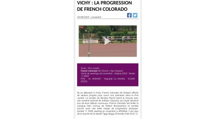 Son poulain par Al wukair est a l'entraînement chez N.PERRET. Il vient de gagner le 20/08 a Vichy pour sa 2eme course.