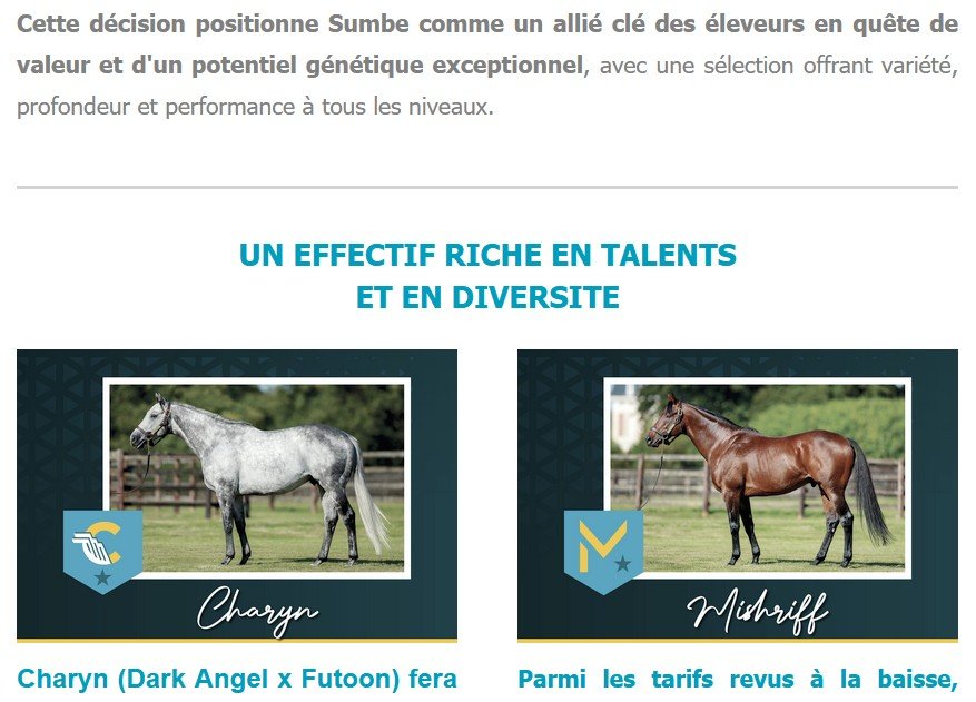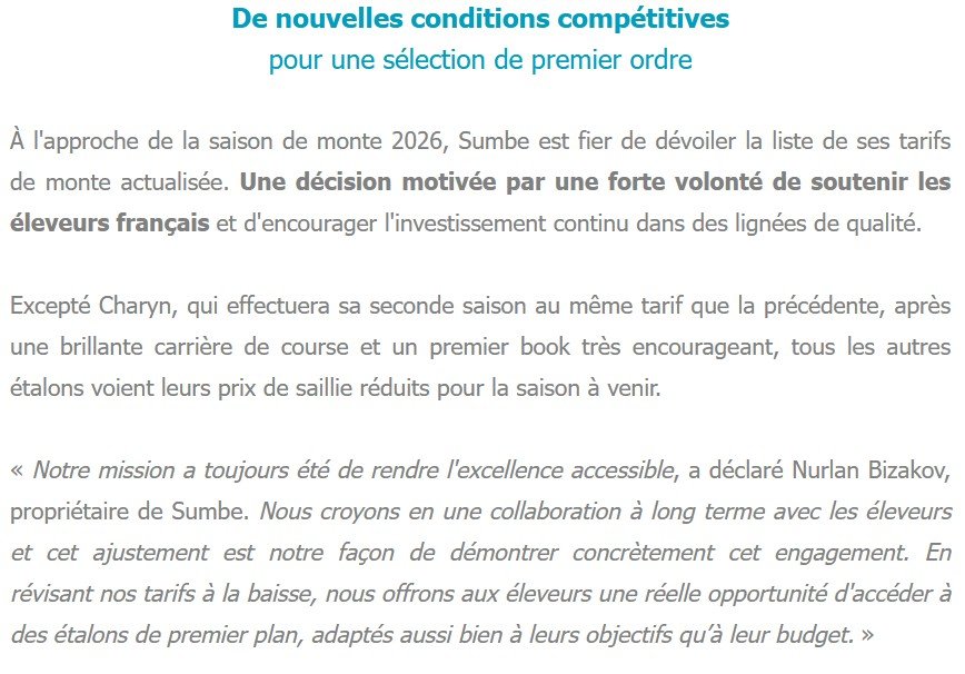 Sumbe ajuste ses tarifs de saillie pour la saison 2026 : voir le détail