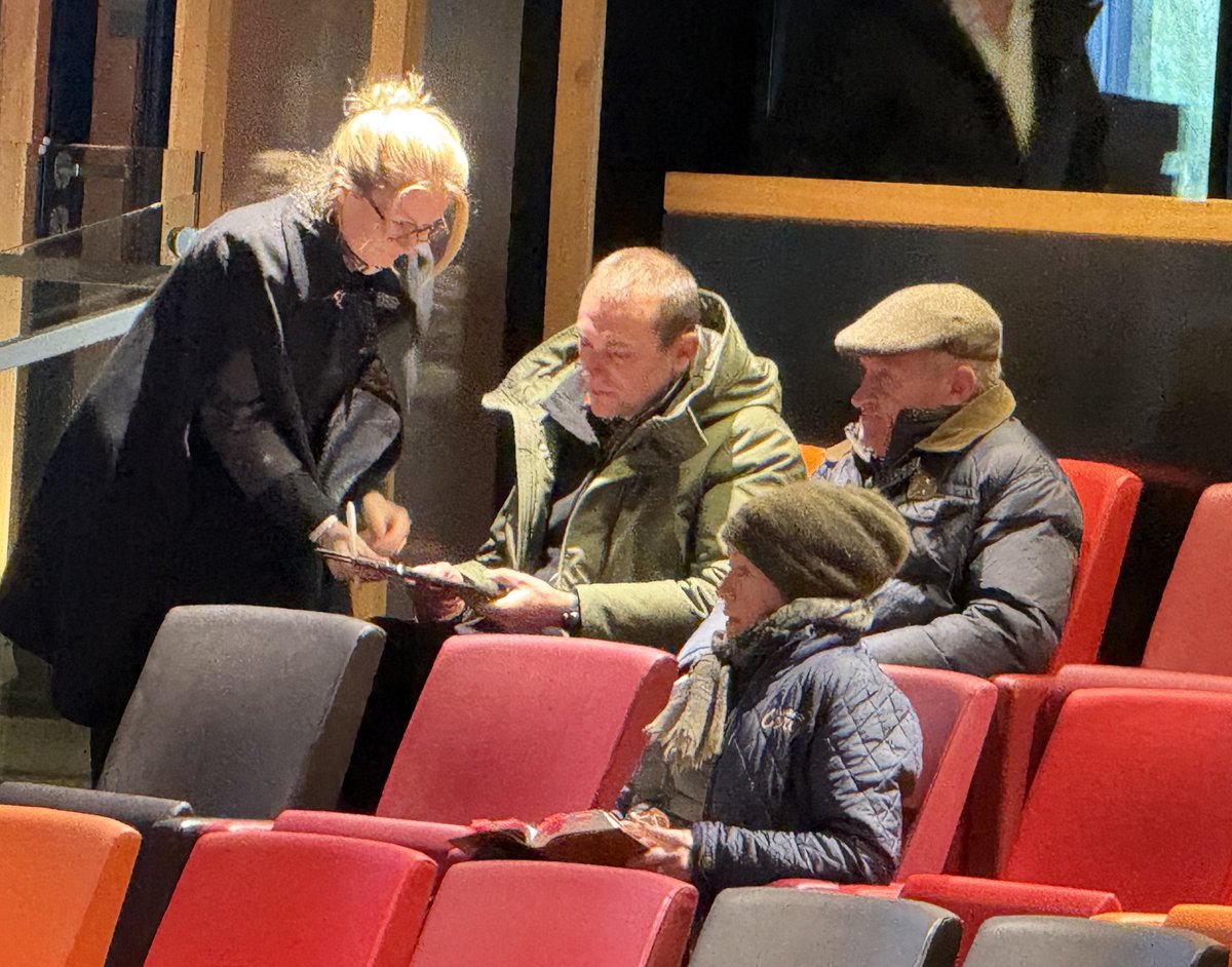 Valentin Adam signe le bulletin d'achat pour le compte du Haras de Cercy, avec ici Andrée et Jacques Cyprès.