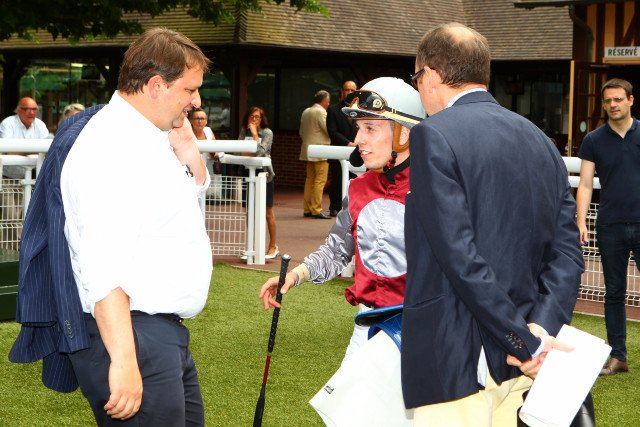 Frank Walter, à gauche, a bien fait de venir encourager son élève et protégée Cirona dans le prix de la Grotte...(APRH)
