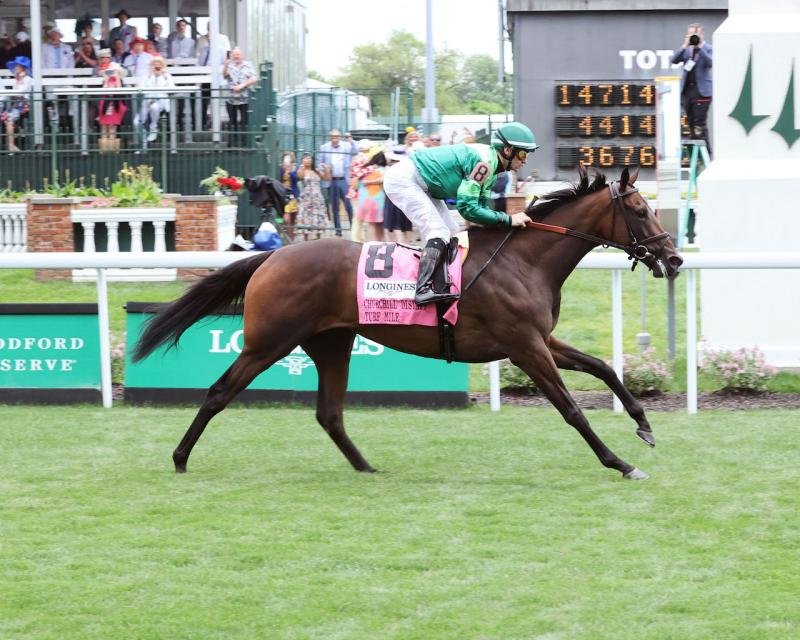 Cinquième top price de l’historique vente d’élevage Arqana de décembre 2021, la quintuple lauréate de Listed et 2e de la Poule d’Essai des Pouliches (Gr.1) Speak of The Devil avait été acquise pour la somme de 1,950.000 € par Michel Zerolo pour le compte d’un propriétaire américain bien connu en France, Peter Brant. La fille de Wootton Bassett s’est depuis envolée pour le USA afin de rejoindre les boxes de celui que l’on surnomme « King of the Turf » : Chad Brown. Pas revue en piste depuis sa victoire dans le Prix Tantième en novembre, Speak Of The Devil s’est facilement imposée le jour des Kentucky Oaks, dans les Churchill Distaff Turf Mile Stakes, un Gr. 2 sur le gazon.