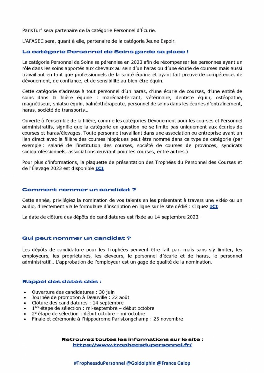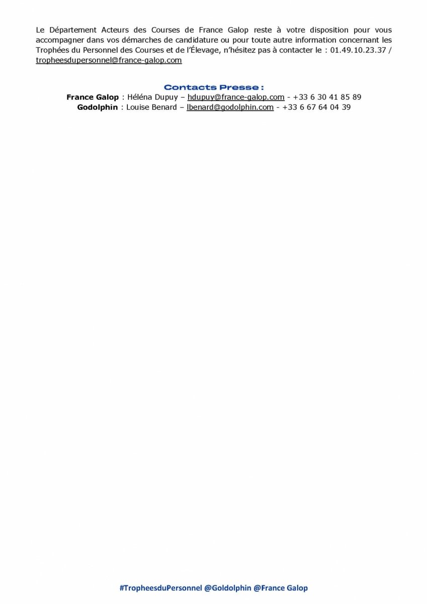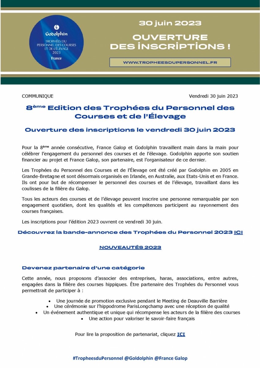 Trophées du Personnel Godolphin 2023 : ouverture des inscriptions.