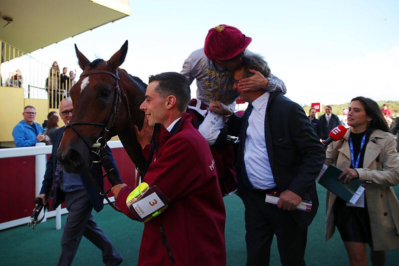 Ce bonheur de voir "son" champion réaliser ce qui semblait jusque-là irréalisable, François Rohaut n'a pas cherché à le contenir. Plutôt que de continuer à "tirer sur les rênes", il a tout bonnement décidé de les "laisser en guirlande". De lâcher prise en fait. De crier. De hurler. De taper du pied. De sauter. D'enlacer. De rire. De pleurer. Bref, de vivre le moment. Pleinement. Simplement. Purement. Tout comme Christophe Soumillon, d'ordinaire plus mesuré au moment de revenir en vainqueur avec son cheval, dans l'enclosure des balances, et qui a lui aussi été emporté par cette immense vague d'émotion À l'instar aussi de Damien Morin, le cavalier du matin d'Al Ghadeer, qui l'a accompagné aux courses en ce premier dimanche d'octobre. Celui qui lui parle en un clin d'oeil, le lit en un coup d'oeil, et mérite aussi une énième médaille de l'ombre, avec tous ses collègues d'écurie, pour l'obtention de cette nouvelle médaille d'or. La 13e du représentant d'Al Shaqab Racing. La 11e au niveau Gr.1.