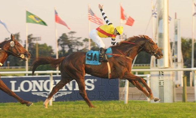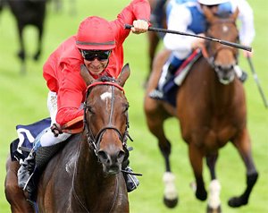 - Love Me True (Kingmambo), mère de Duke of Marmalade (Danehill) (qui avait participé à l’Arc 2008) et de son frère Ruler of The World (Galileo). Le team de Coolmore avait acheté leur mère yearling (1999) pour $ 1.300.000. Placée de Gr.3 à 2 ans, elle avait ensuite servi de leader à Imagine lors de sa victoire dans les Irish 1000 Guinées 2001. Le team de Coolmore devait présenter (seulement en cas de bon terrain) Camelot que l’on connaît pour sa formidable carrière à 3 ans et Leading Light (il devrait courir puisqu’il va être supplémenté). Tous les deux ont été achetés yearling pour 520.000 Guinées. Quant au leader présumé, Kingsbarns (Galileo), il a été élevé par l’épouse d’Aidan O’Brien. Invaincu à 2 ans, il restait sur un succès dans le Racing Post Trophy avant sa rentrée en septembre dernier finissant loin, très loin même dans les Irish Champion St. de The Fugue.