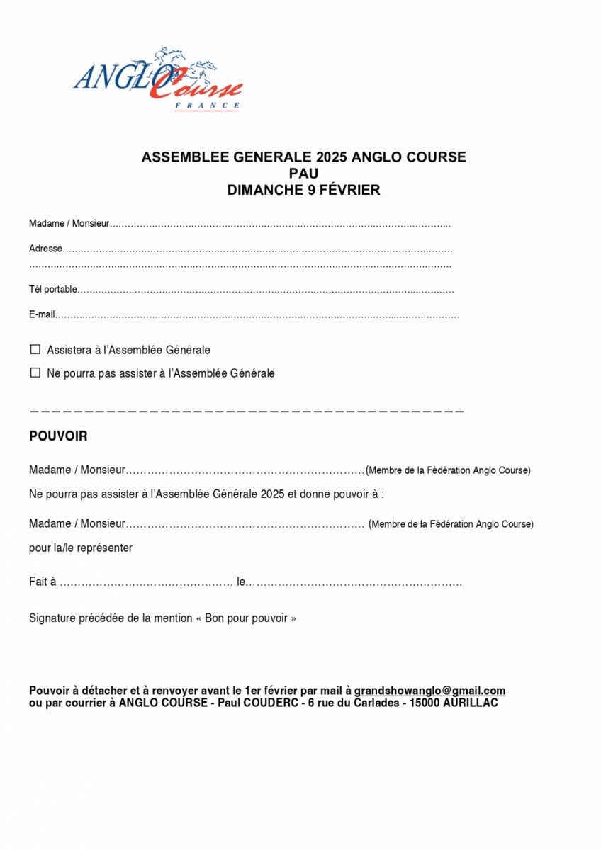 Convocation à l'Assemblée Générale 2025 de la Fédération Anglo Course