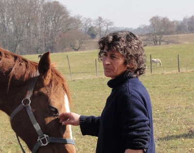 [caption id="attachment_352" align="aligncenter" width="400" caption="Véronique Laborde, la patronne du Haras du Bosquet entre Aire-sur-l'Adour et Pau"]