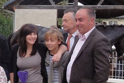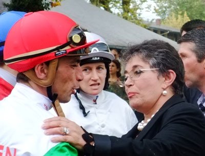 Carmen Delmas, propriétaire éleveur de Bénévolo de Paban, en compagnie de son jockey Jean-Bernard Eyquem.