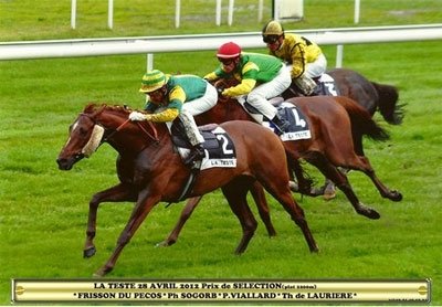Son palmarès est déjà des plus riches avec la Poule d’Essai, le Ministère, le Grand National, le Prix de Sélection et le Grand Prix d’Aquitaine. Sa plus mauvaise performance est une troisième place en débutant (sept victoires et deux places en neuf sorties) ! La victoire de Frisson du Pecos dans l’Omnium 2012 porte ses gains à 165.140 euros et il n’a que quatre ans et la saison n’est pas encore finie ! Au même âge le crack Carghese des Landes en était à 107.968 euros de gains acquis en 5 victoires et 4 places ! Frisson du Pecos pourra t-il égaler les dix victoires successives de Carghese des Landes ? Une affaire à suivre dans les prochaines courses sélectives pour Anglos à 50%.