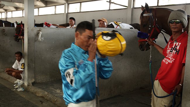 Toutes les distances de tous les hippodromes sont identiques : 1200 m. Sauf pour quelques grands prix, dont le Derby sur 1600 m, considéré ici comme un véritable marathon. L'ambiance côté écurie à étage, un dense capharnaüm parfaitement organisé que seule l'Asie sait produire, reste très bon enfant, vraiment familiale. Côté tribunes, des flambeurs, comme partout dans le monde, qui peuvent aller au guichet du PMU local mais aussi tendre la main pleine de billets aux bookmakers, rigoureusement interdits et donc très bien installés avec leurs représentants et leurs téléphones portables qui sonnent sans cesse. Tout va très vite, aucun papier n'est fait mais personne ne risque le litige, car la police veille et ejecterait manu militari les bookmakers soupçonnés. La même Police qui surveille à ce que les bookmakers (toujours interdits offiiciellement !) reversent bien aux organisateurs un pourcentage équivalent à ceux du PMU ! Il paraît que tout le monde respecte scrupuleusement les règles, car il parait aussi que les autorités (dont il paraît toujours qu'elles sont corrompues...) ne sont quand même pas tendres.