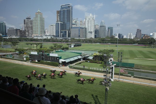 En fait, cela ressemble...à des courses asiatiques mais avec des   pur-sangs américains. Mais comparaison n'est pas raison et les courses   ne ressemblent qu'à des courses Thaï, avec un authentique savoir-faire   certain dont on se demande d'où il vient, vu que tout est archi fermé   ici, dans ce pays dont les habitants rappellent fièrement que malgré la   proximité avec la Chine, malgré les soubressauts mondiaux du 19e et du   20e siècle, malgré une influence anglaise notable dans les moeurs et le   savoir-vivre, malgré la guerre du Viet-Nam et la présence américaine   ayant fait de la Thaïlande sa base, malgré la pagaille politique   actuelle qui a conduit à une dictature militaire adoubée par un régime   monarchique dont le vieux roi de 87 ans, placardé à chaque coin de rue   est peut-être mort depuis des mois sans que cela n'ait été révélé,   jamais, grand dieux jamais le Royaume de Thaïlande n'a été colonisé par   une puissance extérieure. A part la crise du pédotourisme allemand qui a   fait mauvais genre il y a une 15aine d'années, une fois passé le   traumatisme du tsunami finalement vite oublié, la mer est bleue et   chaude, le pays est riche, les hopitaux sont des 5 étoiles, les gens   mangent bien, il n'y a que peu de chômage. Bref, ça va quoi.