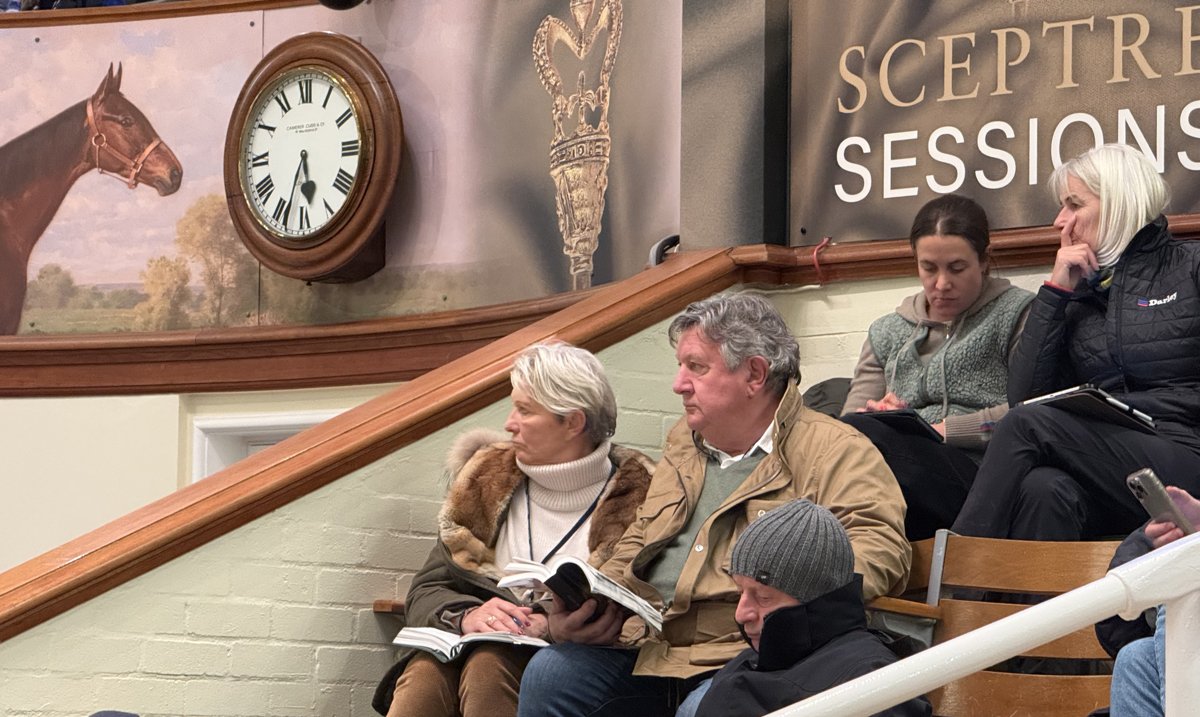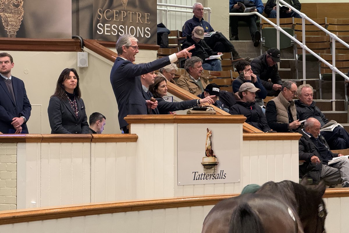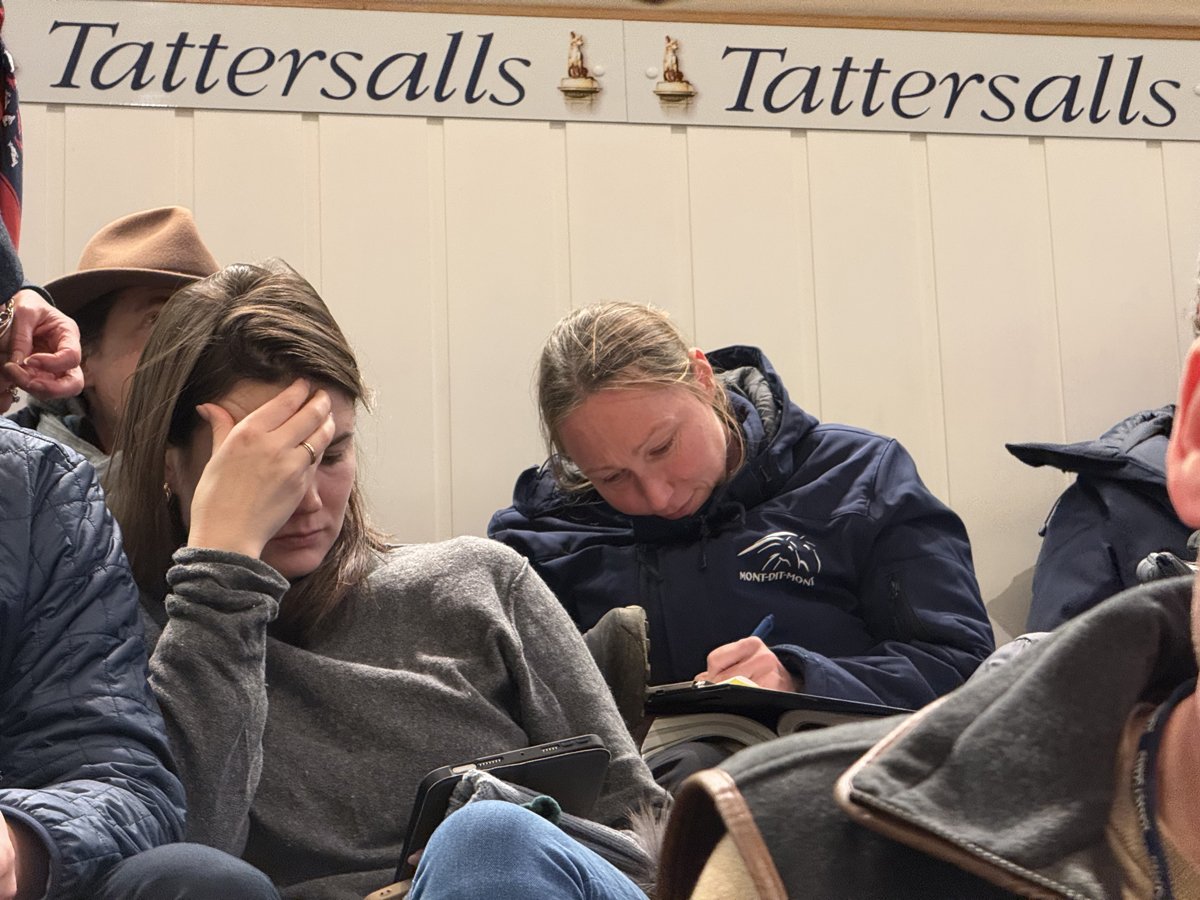 Jennifer Sassion, le responsable d'élevage du Haras du Mont Dit Mont, signe le bulletin à 350.000 GNS pour Highland Fling (lot 1449), une fille de Galileo pleine de Little Big Bear.
