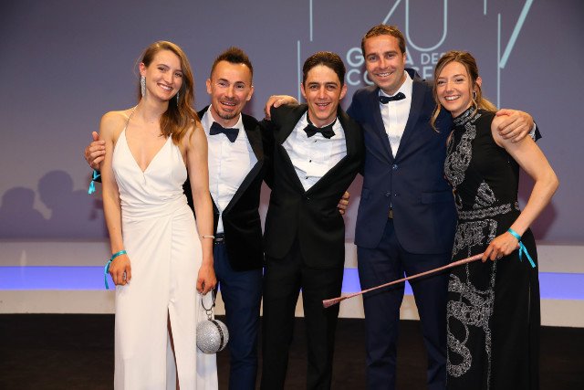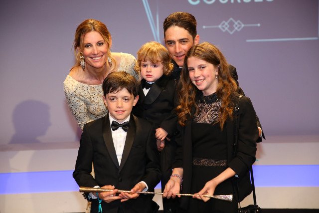 Pierre Biancone, le parrain de la soirée, Bertrand Lestrade, Christophe Soumillon et les enfants.