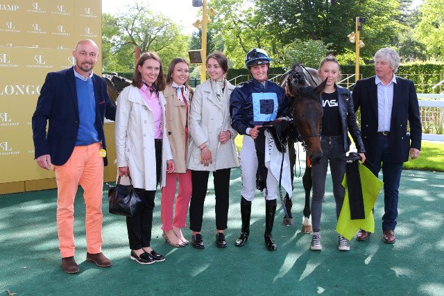 Chrystelle et Ghislain Coutré (à gauche), lors de leur première victoire à Longchamp, sont désormais partis à la conquête de l'Irlande et l'Angleterre ! (aprh)