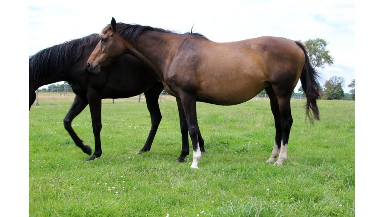 Hahyasi, la première poulinière achetée par les Coutré, photographiée cette année dans leurs prés. Elle est connue aujourd'hui comme la mère de Amazonya et de la prometteuse Harmonya Maker