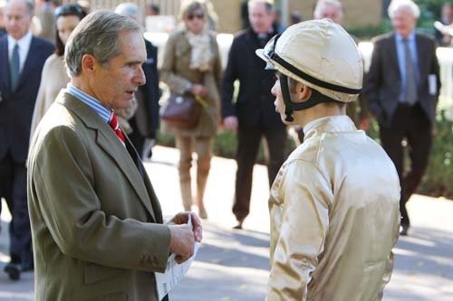 André Fabre donnant les ordres à Maxime Guyon associé à Be Fabulous... qui gagnera d'1 longueur 3/4 devant Miss Largo