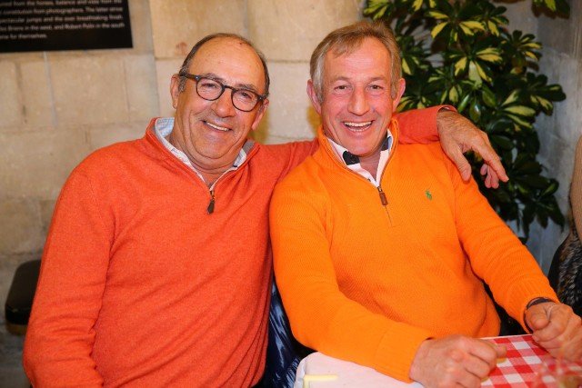 Deux adaptes de la couleur orange : François Nicolle et Jean Yves Artu à la soirée France Sire de l'obstacle à Trouville.