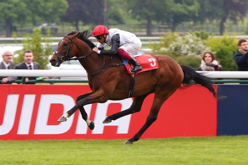 Cracksman lors de sa victoire dans le Prix Ganay (Gr.1), monté par Frankie Dettori (photo APRH)