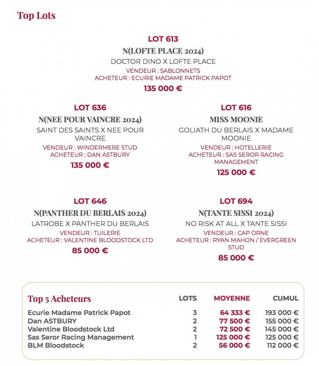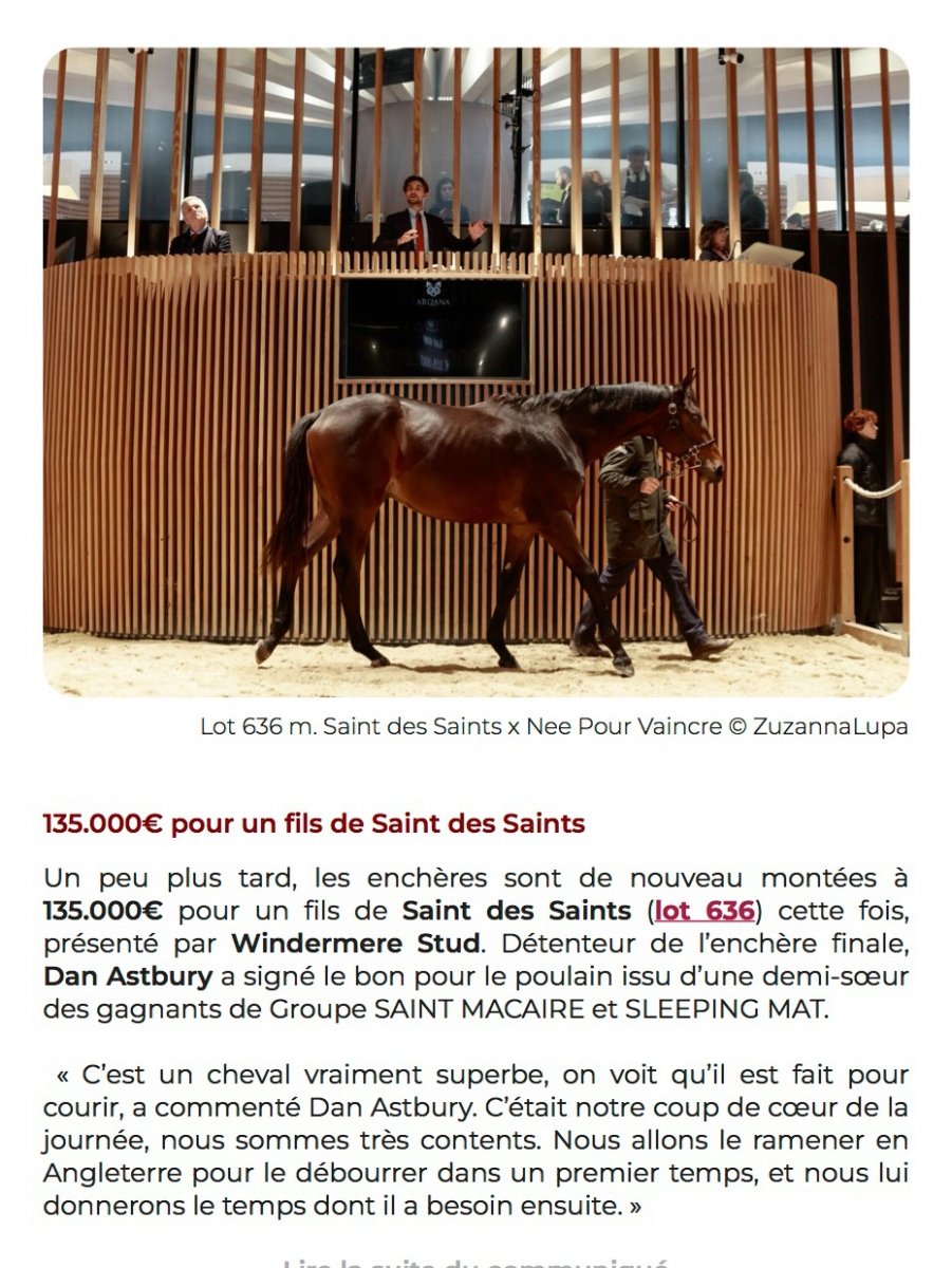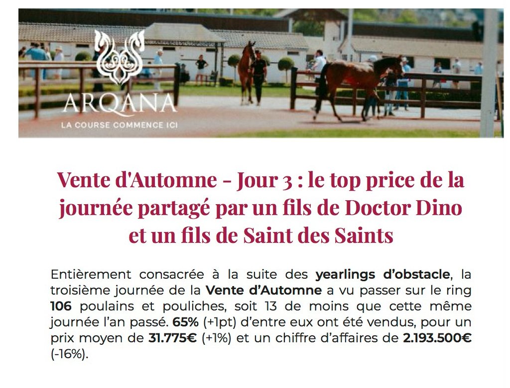 Arqana Vente d'Automne J3 : deux top à 135.000 euros