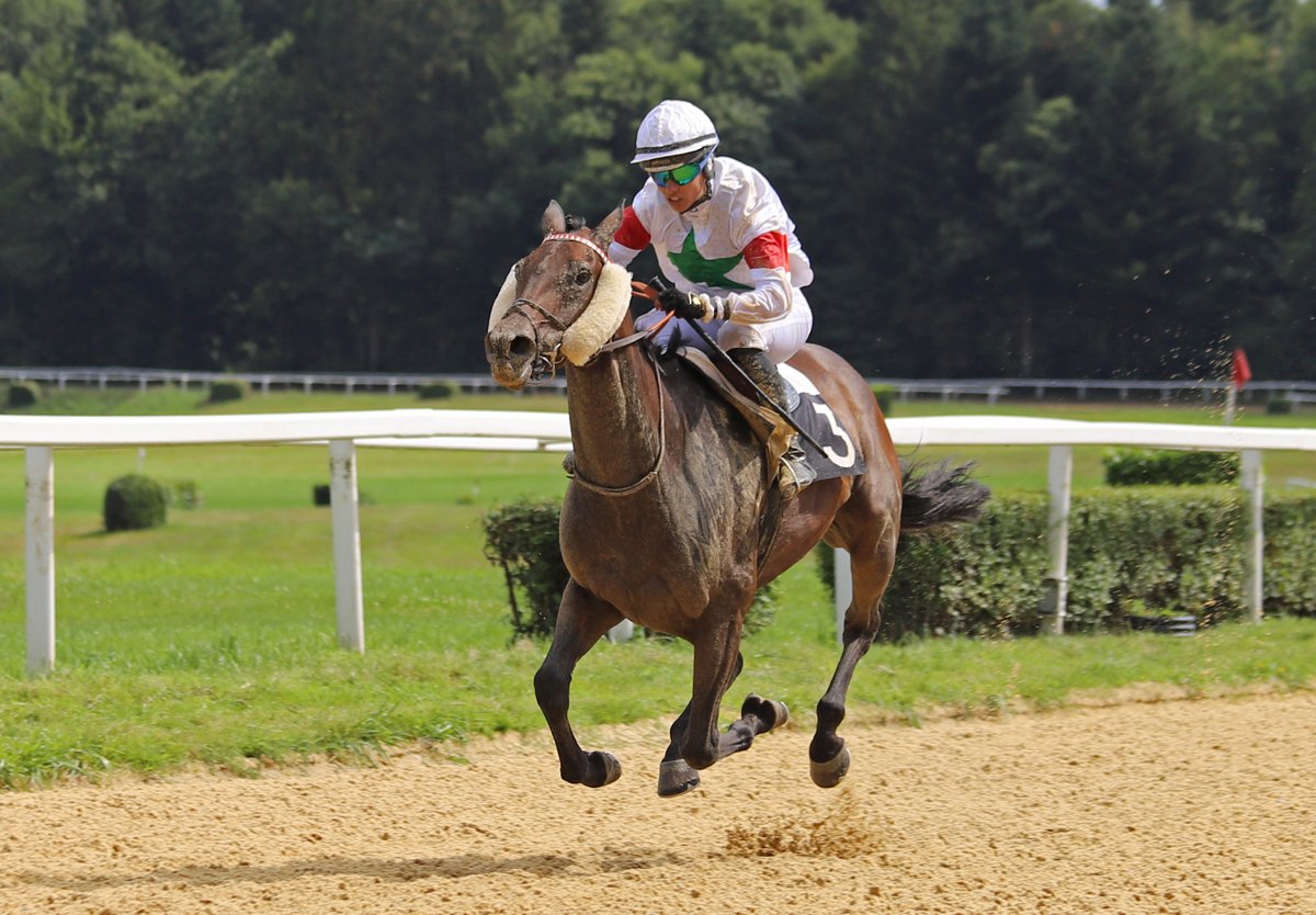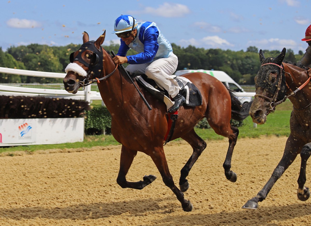 Jafar d'Escar et Marie-Anne Bernadet, filant vers la victoire dans la Coupe des Anglo-Arabes à 37.5% le 15 août dernier, sur l'hippodrome de Pompadour