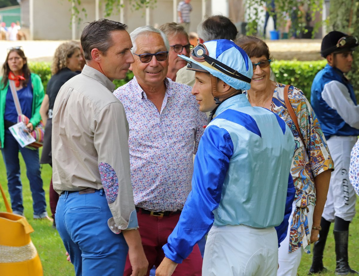 Dans la vie, Nicolas de Taffin a deux passions: le vin et les chevaux. Cultivant du bordeaux-supérieur (Château Vieux Meyney, ndlr) sur la commune de Villegouge, non loin de Bordeaux, en Gironde, ce dernier a effectivement endossé la casquette d'éleveur de galopeurs durant un temps. Une activité qu'il a depuis mis entre parenthèses, mais à travers laquelle il a connu de grands et beaux moments de liesse. Pas plus tard que ce mardi 15 août d'ailleurs, sur l'hippodrome de Pompadour, où il a eu la joie d'assister de ses yeux vus à l'envolée de Jafar d'Escar dans le Prix du Puy Marmont - Coupe des Anglo-Arabes à 37.5%. Un succès à la saveur particulière, car ce fils de Tidjali d'Or, entraîné sur le domaine de Sers par Christelle Courtade, n'est autre que le tout dernier cheval qu'il ait élevé, et dont il est toujours propriétaire, en association avec Hubert Harivel (le propriétaire de Tidjali d'Or, ndlr) ainsi que Julie & Baptiste Guinaudeau, ses voisins vignerons (Château Lafleur, ndlr), à qui il a souhaité faire découvrir l'univers magique des courses hippiques.