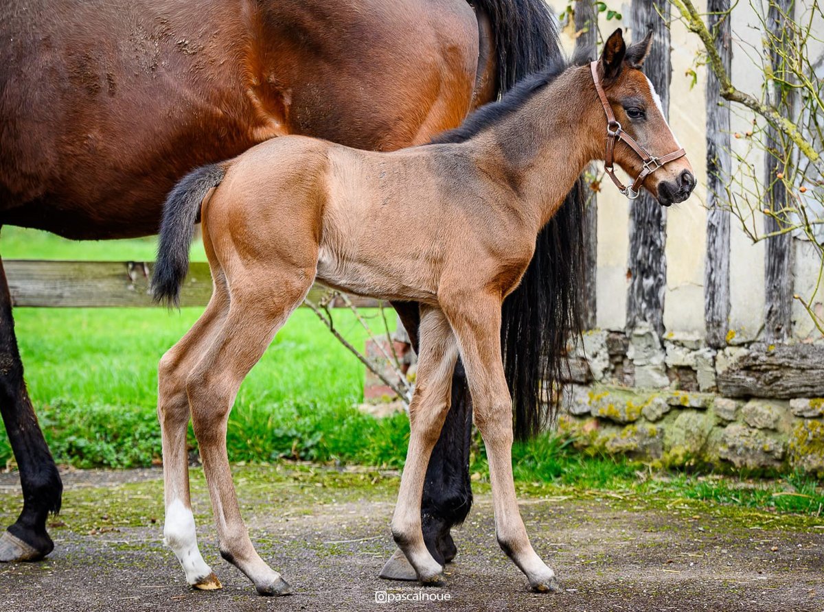 Pascal Noue qui a vu ce premier foal commente : c’est un beau poulain, grand, bien fait et surtout qui est plein d’énergie. J’ai hâte, comme les éleveurs, de voir d’autres produits de Léon du Berlais.