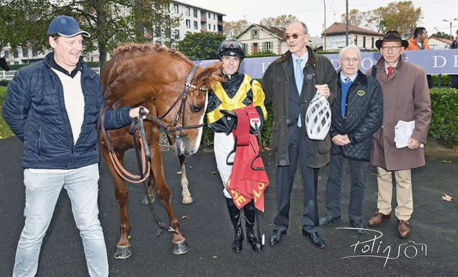 La mère, France du Pécos, ici de la plus grande souche anglo-arabe des temps modernes, celle de Patrick Davezac au Haras du Pécos, a été elle aussi une championne pour le Dr Yves Frémiot qui l'avait acquise et confié à sa fille Carole Dufrêche. A 4 ans, elle avait gagné ce même Grand National de Toulouse dans la foulée du Grand Prix des Anglos à Longchamp ! Le poulain a été acquis yearling, en même temps que sa mère France du Pécos, par Francis Montauban au Haras d'Ayguemorte. il porte 29% de sang arabe. Dieu soit loué il est encore entier et fera un jour un étalon très convoité.