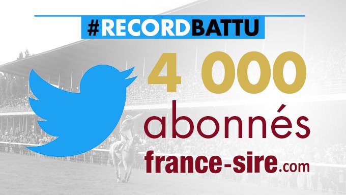 Le compte France Sire a dépassé les 4.000 abonnés sur le réseau social Twitter, seulement quelques mois après que le site ait enregistré pour la première fois plus de 100.000 visiteurs au mois. Chers amis lecteurs, amoureux des courses et de l’élevage, vous êtes toujours de plus en plus nombreux à nous suivre, alors merci à vous !
