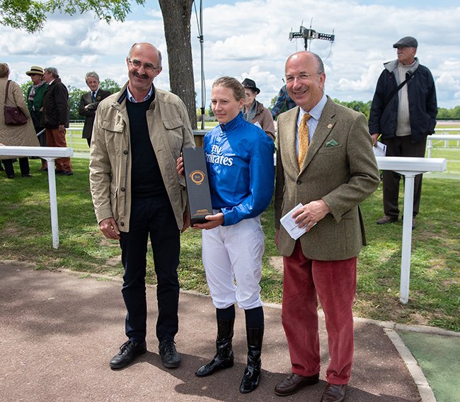 Joël Boisnard remporte le Prix du Pont aux Filles avec Mixed Mind, montée par Mélanie Plat, ici au coté de Gérard de Chevigny, le vice-Président de la Fégentri.