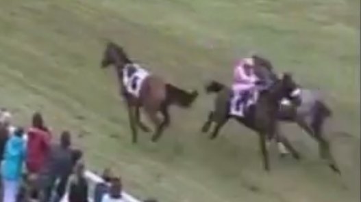 Ainsi, alors qu'ils viennent de franchir la dernière haie largement en tête et file tranquillement vers le succès sur le steeple-chase Prix Josselin de Rohan, Cross Way et son jockey se retrouve pile en face de 2 chevaux en liberté, victimes d'une chute au 2ème obstacle et qui ont ensuite semé une pagaille indescriptible dans le peloton, provoquant plusieurs chutes et dérobades. En moins d'une seconde, il se rend compte du danger mais n'a pas le temps de décaler son cheval vers l'extérieur ou l'intérieur de la piste, alors il reste en ligne...passe à pleine vitesse juste entre deux chevaux en liberté venant en plein galop en sens inverse !!!