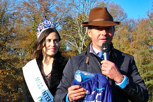 Maëva Balan, sur le podium, en compagnie de Thierry de Chambord, vice-président de la Société des Courses du Pin