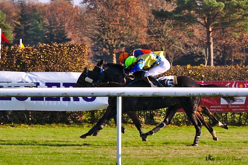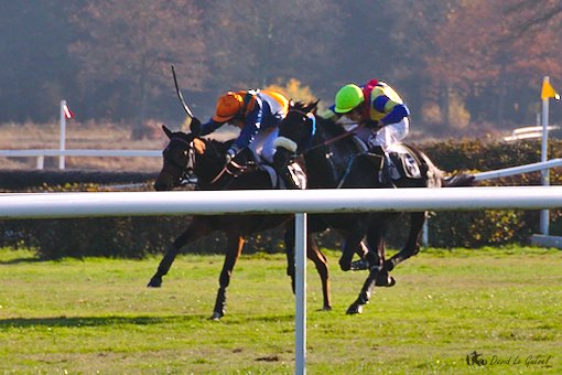 Un cross, pour 4 et 5 ans, sur la distance de 4100m, opposant un lot famélique de 4 partants, était ensuite proposé au public. Easyland (Gentlewave) menait le bal mais refusait de sauter le triple de haies, éjectant Quentin Samaria, sans gravité. Le représentant de l’Entraînement Chemin-Herpin, Daxxolem’s (Axxos), venant de chuter en début de parcours lors de la réunion du 21 octobre, se retrouvait en tête pour aborder les difficultés des ¾ du parcours restant. Le représentant de la casaque Magalen Bryant, Stribel (Sumitas) venait ajuster Daxxolem’s dans les derniers mètres de ce cross. Patrice Quinton réalisait le doublé en gagnant les 2 cross du jour, devançant l’Entraînement Chemin-Herpin à chaque fois.