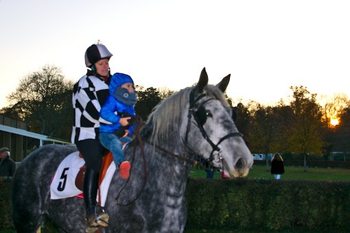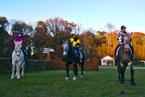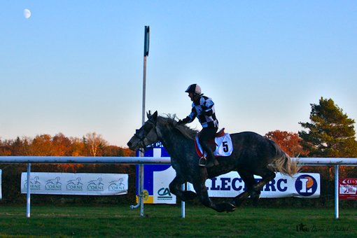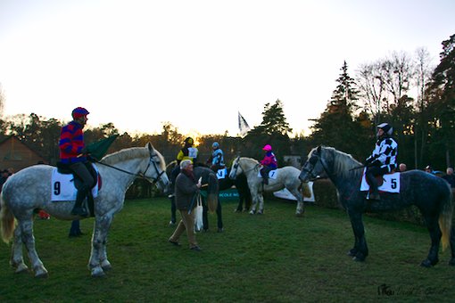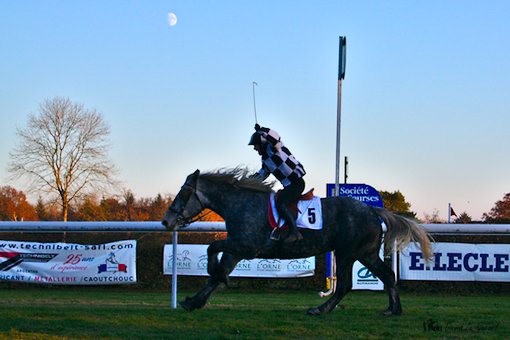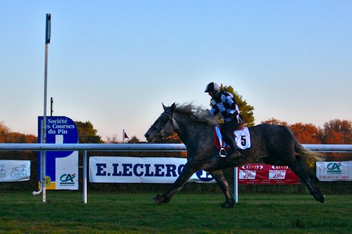 Pour conclure cette belle et fraîche journée de novembre, dernière réunion qui plus est, la Société des courses du Pin avait organisée, comme depuis quelques années, une course de percherons. Départ donné à la sortie du dernier tournant, les 6 percherons se lançaient à pleine allure vers le poteau d’arrivée. La victoire était, de nouveau féminine. A noter, une chute, sans gravité, à mi-parcours. Ne serait-ce le résumé de la journée : des femmes à l’honneur, des chutes sans gravité ?
