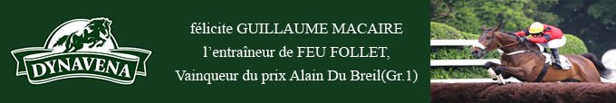 Gagnant dès ses débuts en juillet de ses 3 ans, Feu Follet présentait un profil quasiment sans fausse note, puisqu'il a gagné 7 fois en 9 courses, et sinon a dérobé une fois, et s'est classé 2ème de L'Autonomie dans le prix de Pépinvast. Il venait de faire une démonstration dans le prix Amadou contre quasiment la même opposition. Quant à Guillaume Macaire, il prouve que malgré la perte de grandes casaques comme celles de Simon Munir ou encore Jacques Détré, il est capable de sortir chaque année des champions, et pour cela, un grand bravo ! On ne sait pas où s'arrêtera Feu Follet, mais il est certain qu'il donnera très chaud aux meilleurs chevaux de haies l'an prochain....C'était aussi un superbe weekend pour Pascal Noue du Haras de la Hêtraie, qui remporte 2 Gr.1 avec 2 de ses étalons, après Bénie Des Dieux pour Great Pretender.