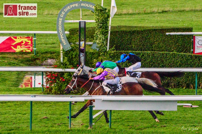 Ulysse des Loucas remporte, lui aussi, son 1er Grand Cross. 3ème de cette épreuve l'an dernier, avant de gagner sur le cross de Saumur 3 mois après, et finir 2e, 15 jours plus tard, il a effectué sa rentrée le 4 août, dans le Grand Cross de Granville. Ayant fait beaucoup d'efforts sur certains obstacles, il avait été arrêté. Cette sortie lui aura permis de faire un bon boulot, 3 semaines avant ce Grand Cross de Dieppe, et ainsi, vaincre, même si Olivier Jouin, qui le découvrait pour l'occasion, a dû "l'astiquer un peu en début de parcours, un peu nonchalant, galopant la tête basse, il faut le mettre un peu aux ordres, Monsieur..." Olivier Jouin traverse une période faste, car il remporte ce Grand Cross de Dieppe seulement 2 jours après sa victoire dans le Grand Steeple-Chase de Waregem.