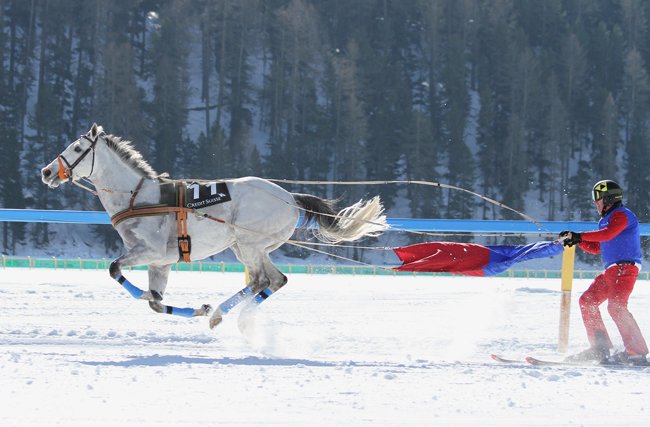 Revoir le reportage "Ski-jöring : un grand coup d'adrénaline!" de février 2012, à l'époque la première victoire de Mombasa et Adrian von Gunten dans le Grand Prix Crédit Suisse