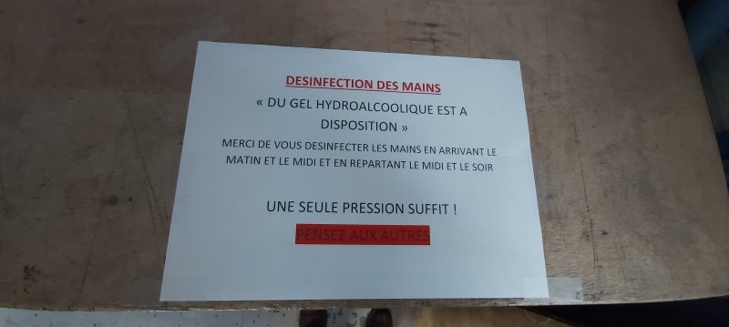 Dans ce contexte, pour protéger les salariés, la direction s’efforce de respecter les règles sanitaires afin de préserver la santé de chacun. Suite aux directives gouvernementales, certaines dispositions ont été prises : utilisation de gel hydroalcoolique, respect des distances de sécurité... Quant à la mise à disposition de masques et de combinaisons elle ne se pose pas !.
