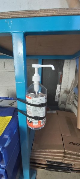 Mise à disposition de gels hydroalcooliques dans l'atelier...