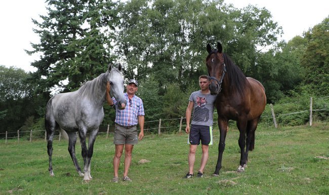 Jean-Raymond et Jean-Baptiste en compagnie de leur champion maison Grand d'Auteuil (à gauche)