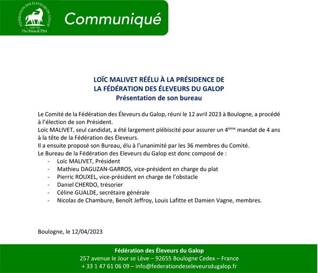 La Fédération des Eleveurs communique une information essentielle pour les éleveurs qui envisagent de faire saillir leur jument à...