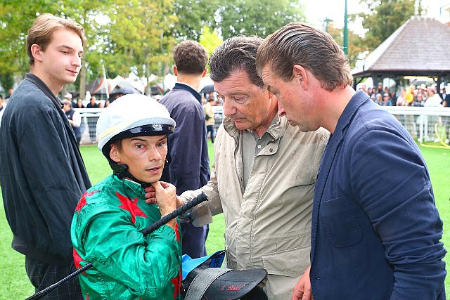 Alexis Badel avec Nonza lors de sa 1ère victoire de Gr.1, en 2018 dans le Jean Romanet, déjà à Deauville