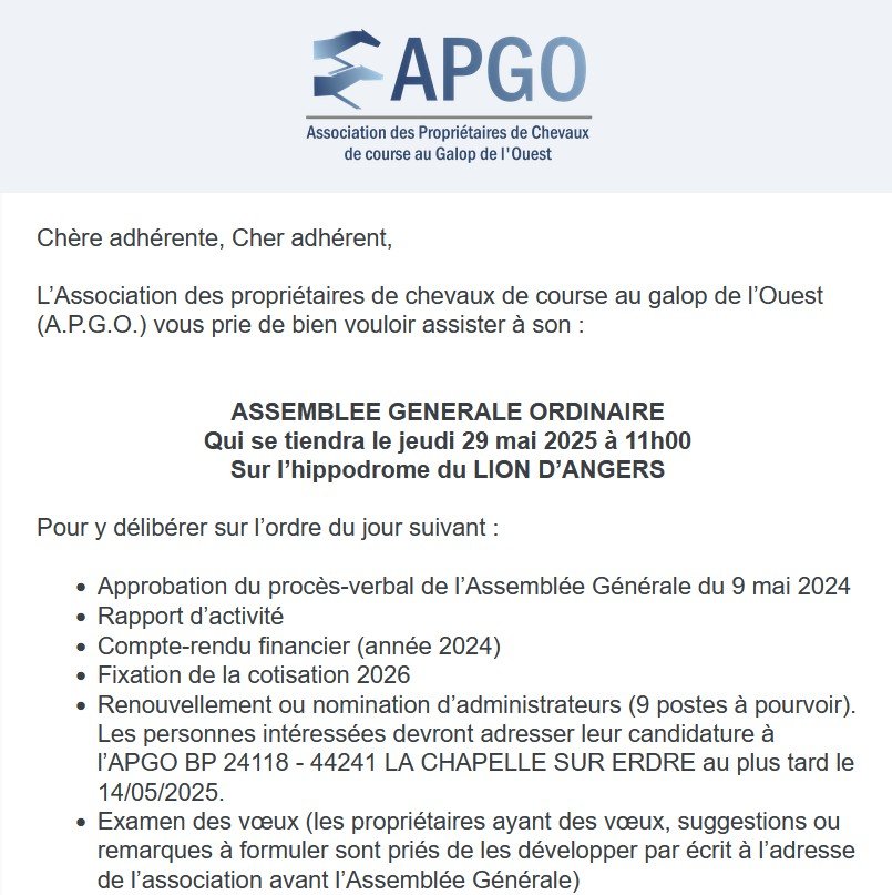 Samedi 13 avril, l’Association des Propriétaires de Chevaux au Galop de l’Ouest organise sa Soirée des Casaques et des Cravaches d’Or au cabaret Les Cercles, non...