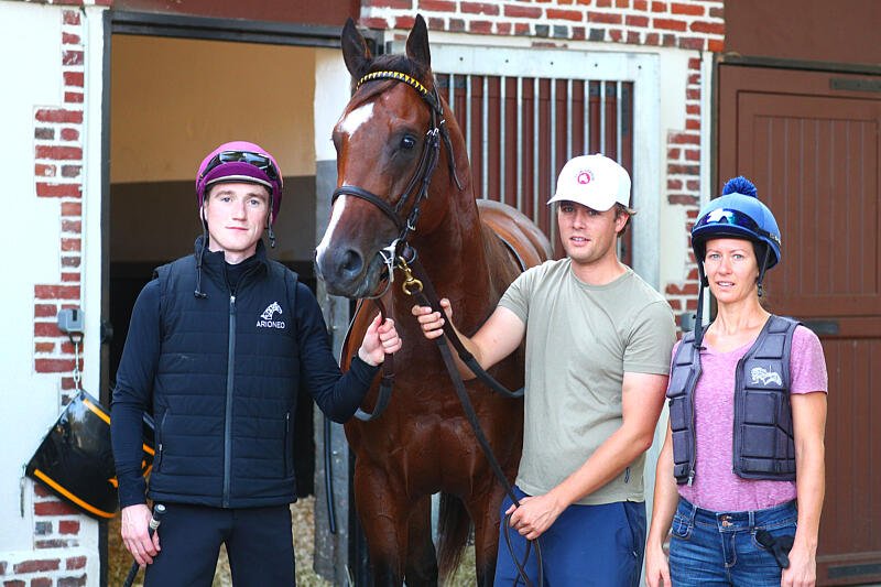 Outfielder avec Louis Dubois, l'assistant français de Wesley Ward, le jockey David Egan et sa cavalière américaine.