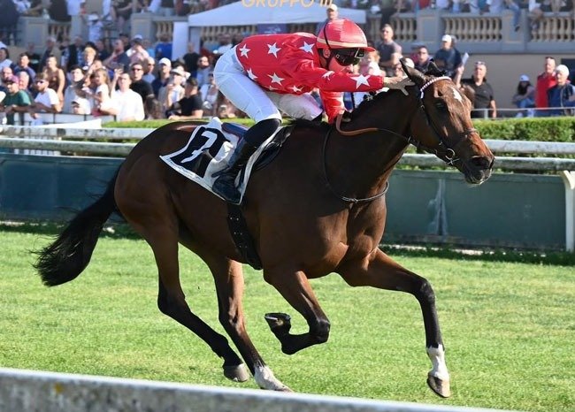 Woodchuck lors de sa victoire dans le Premio Vittorio Di Capua (Gr.2) 2024 où il remettra son titre en jeu d'ici 15 jours !