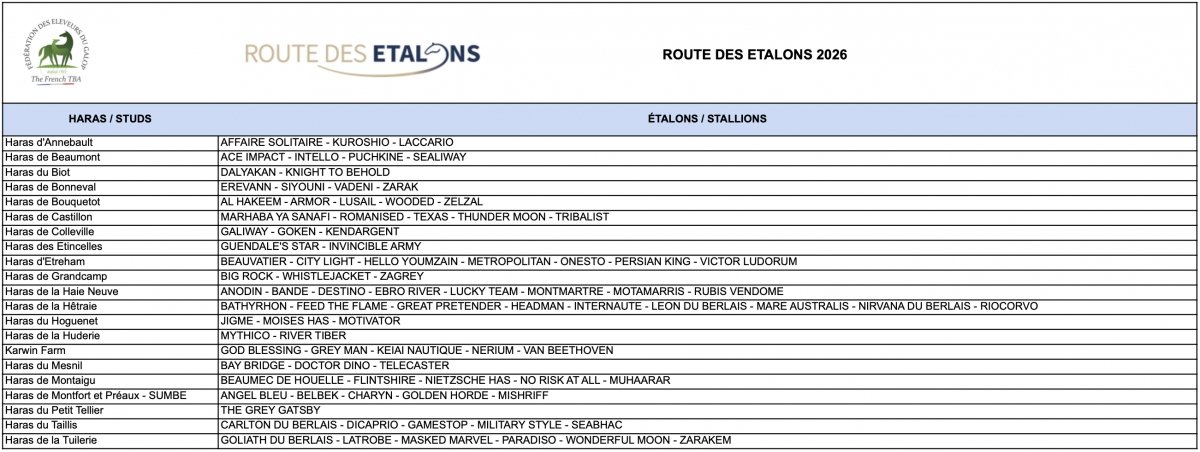 Ces nouvelles implantations illustrent la capacité de la France à attirer des étalons aux profils variés, répondant aussi bien aux attentes du marché national qu’aux exigences des ventes internationales. Retrouvez ci-dessous, la liste complète des haras et des étalons présentés.