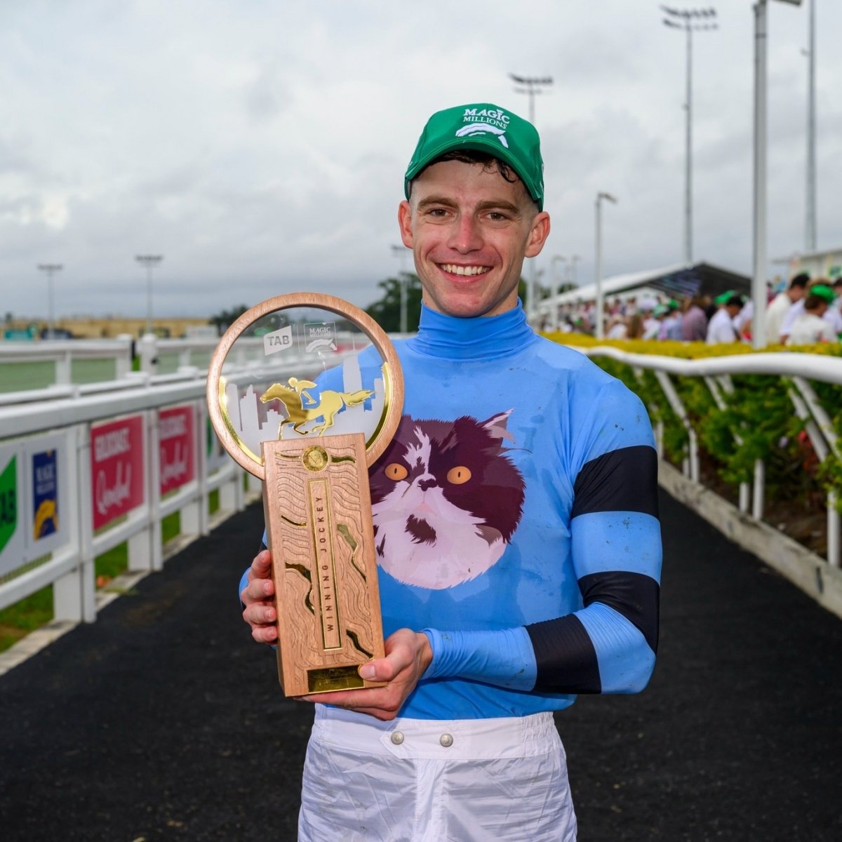 La TAB Magic Millions 2YO Classic (L.) soit l'équivalent des ARQANA Series en France a une nouvelle fois tenu son rang sur l’hippodrome de Gold Coast en Australie, théâtre d’un spectacle de très haut niveau réservé à l’élite des deux ans australiens. Devant une foule nombreuse et dans une épreuve richement dotée avec 1 million d'euro au vainqueur, Unit Five (AUS) a signé une performance de premier plan, s’imposant avec autorité et confirmant ses débuts victorieux ainsi que son statut de jeune talent majeur de la génération. Un cas unique à ce niveau, la casaque gagnante comporte un chat, et pas n'importe quel chat !
