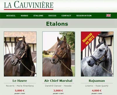 Voilà pour la description synthétique du Haras de la Cauvinière, qui connait un essor parallèle à celui de son célèbre client, Gérard Augustin-Normand, qui est le plus célèbre mais loin d'être le seul. Comme à chaque fois, les dirigeants du haras n'ont pas fait les choses à moitié. Pour mieux présenter leurs étalons, ils proposent au public, outre les photos, les pédigrées et les performances détaillées, toute une série de vidéos (réalisées par France Sire Productions), notamment sur le nouvel étalon Rajsaman, qui demande à être connu. Ainsi, il est possible de revoir l'intégrale de toutes ses performances principales mais aussi un résumé des meilleurs moments, un film de présentation générale avec des images du cheval au haras et le best of des interviews de son entraineur Freddy Head et de son jockey Thierry Jarnet, par ailleurs disponible in extenso.