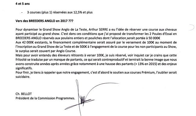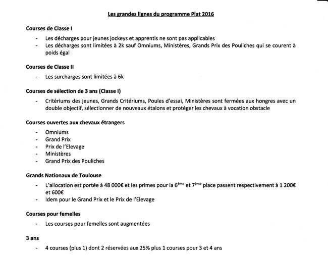 Programme du plat ANGLOCOURSE 2016 prévisionnel