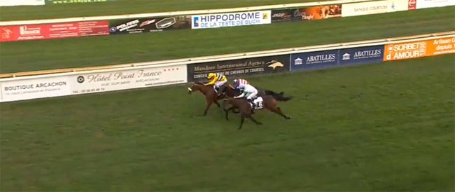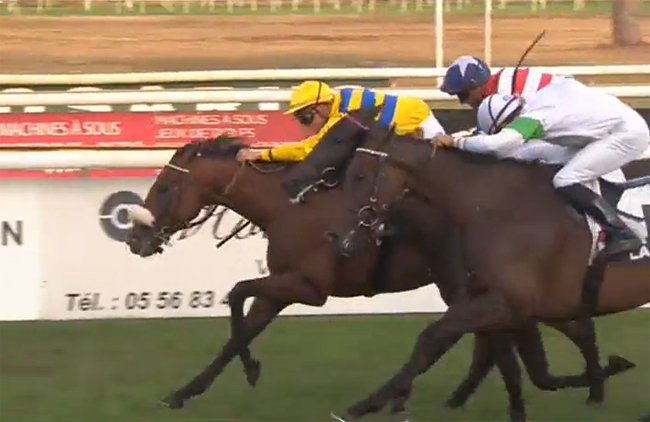 Après avoir mené jusqu’au début de la dernière ligne droite, le fuyard Silver Petrel a laissé se détacher les trois premiers : Feufolet Roc Marie, Mossalis et la favorite Dayana Sourniac. Alors que la victoire allait se dessiner entre les deux pouliches, c’est finalement le mâle Feufolet Roc Marie a s’est montré extrêmement courageux pour revenir sur le poteau et empocher ce classique sur 2.400m. Elevé par Philippe et Bénédicte Chalret du Rieu sur le domaine de Roc Marie à Maleville dans l’Aveyron, Feufolet Roc Marie est un fils de Laverock, exporté en Irlande en mars 2016 après avoir déçu en tant qu'étalon en France, et de Tamiche (Ramouncho), une ancienne élève de Jean Biraben, qui avait atteint les sommets de la discipline avec son propre frère ainé, le crack Zamouncho. La soeur aîné de Feufolet nommée Yalla de Roc Marie (Policy Maker) avait remporté à 3 ans le Prix Carabine à Tarbes en 2014. Deux ans plus tard, son frère a fait de même pour ouvrir son palmarès.