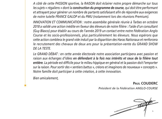 Ce guide annuel est le principal outil de communication de notre association pour promouvoir l’anglo-arabe de course. Pour 2018, quelques éleveurs n’ont toujours pas renvoyé la fiche de...