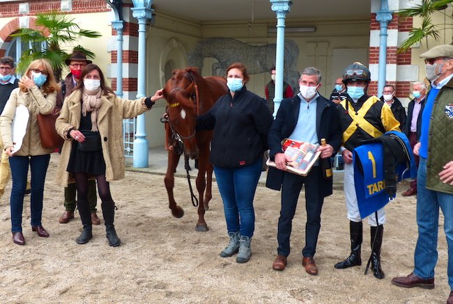 Troisième de ce Prix Caroline de Freycinet l'an dernier juste derrière la grande Couleur Fauve, qui l'a de nouveau devancée trois semaines et demie plus tard dans le Grand National des Anglo-Arabes de Toulouse, Frisson Bleue est parvenu à s'imposer cette fois-ci, pour la plus grande joie de son entourage, et notamment celle de Didier Guillemin, son entraîneur: "Alexandre (Gavilan, ndlr) l'a vraiment très bien monté. C'est un cheval qu'il faut monter derrière, mais il a pris le parti de venir en dedans des chevaux et est passé dans un trou de souris. C'est bien joué de sa part. C'est un cheval très courageux, très gentil, mais qui a eu quelques problèmes de santé de 3 à 5 ans, notamment au niveau du dos et d'un boulet. Nous avons décidé de le préserver et bien nous en a pris puisqu'il continue à se montrer très régulier dans l'ensemble". Avec six victoires et douze places obtenues en l'espace de 19 sorties, ce terme de "régularité", n'est effectivement pas volé !